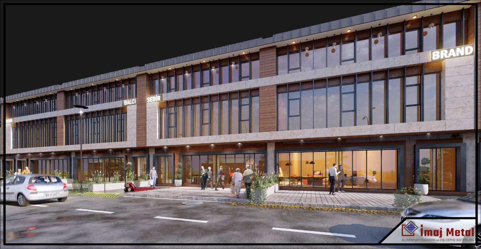 55'lik Seri Isı Yalıtım Alüminyum Doğrama ve Cam işleri Uygulaması, Kompozit Panel Giydirmesi, Seramik Mekanik Kaplaması, Kenet Sac Uygulaması Yapılmıştır.
